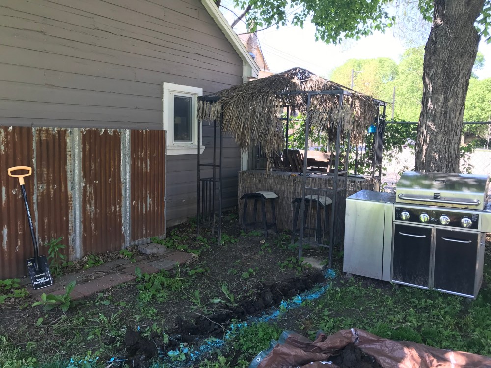 Here you can see my failed attempt to make this a nice space. I’m not going to tell you how much wasted grass seed was used on this area but let’s just say my only option was to dig it up and turn it into something else. To the right of the tiki bar under the tree I turned that area into a shade garden which I will share later.