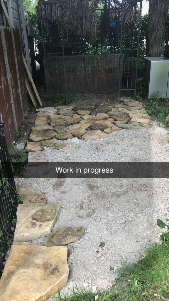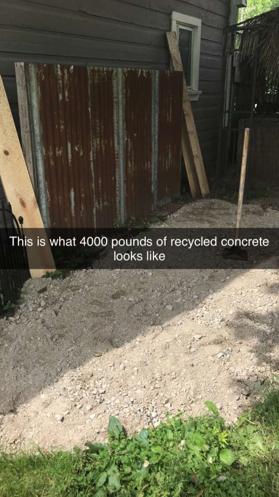 Words cannot express how much I love recycled concrete. For one it puts to use something that would otherwise be thrown away. And two it creates an extremely strong level base for anything you want to do. I wish I knew about this when I was doing my fire pit because the sand (which was once perfectly leveled and I tamped down excessively) is now sagging 3 years later. But recycled concrete is all the strength and minimal effort. You just have to figure out a way to get it home! This 4,000 pounds was about $30.